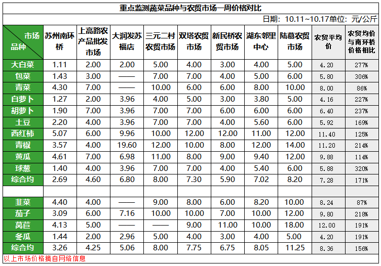 3. 重點監測蔬菜品種與農貿市場一周價格對比