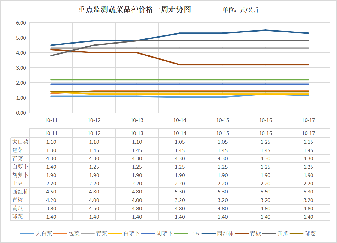 1. 重點監測蔬菜品種價格一周走勢圖
