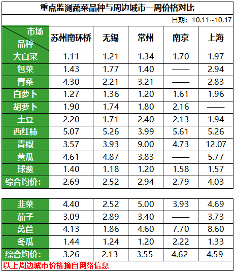 2. 重點監測蔬菜品種與周邊城市一周價格對比
